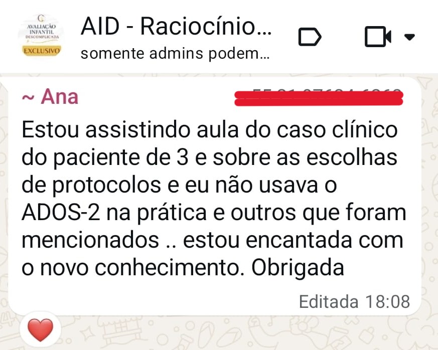 Com 20 anos de prática clínica e 10 anos como professora universitária, eu criei o Método AID (Avaliação Infantil Descomplicada) — um fluxo estratégico que te guia desde a anamnese até o PTS, desenvolvendo seu raciocínio clínico, não apenas a aplicação mecânica de testes.